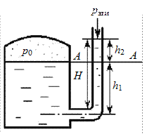 К закрытому резервуару для определения давления на свободной поверхности р0 присоединена стеклянная трубка. Спрашивается, какое давление в резервуаре р0, если вода в трубке поднялась на высоту Н = 3 м? Трубка присоединена на глубине = 2 м.