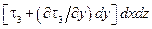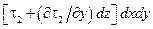 На гранях, параллельных плоскости координат x0z, действуют напряжения, а, следовательно, и силы вдоль оси x: На гранях, параллельных плоскости координат x0y, на ось 0x проектируются силы Суммарная составляющая сил, возникающих на гранях изолированного элемента жидкости за счет дополнительного напряжения в проекции на ось x, равна