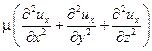 Определим теперь силы, возникающие в точке потока за счет вязкости. Проекция на ось 0x сил вязкости, отнесенных к единице объема и действующих в точке, определяемой в потоке координатами x, y, z. Проекция на ось 0x сил вязкости, отнесенных к единице объема и действующих в точке, определяемой в потоке координатами x, y, z: