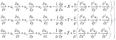 Полученная система уравнений называется уравнениями Навье-Стокса. Уравнение Навье-Стокса, как и уравнение Зйлера, интегрируются только для некоторых частных случаев, но в последние годы, в связи с развитием различных методов решения подобных задач, полученные уравнения используются все чаще и являются идеальным инструментом, позволяющим получить хороший результат. Наиболее часто для решения уравнений Навье-Стокса применяются численные методы.
