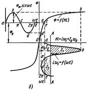 Рис.11, а,б. Побудови на рис.11,а відповідають випадку, коли Побудови проводимо в такій послідовності. Спочатку відкладаємо значення постійної складової потоку Струм Пряма А — А (рис.11,б) є нульовою лінією для кривої Зіставляємо висновки, які стосовні розгляду нелінійного індуктивного елементу, рис.11,а,б. Зіставними величинами є: