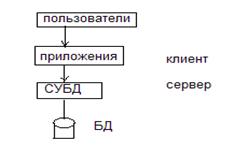 1. Анализ структуры СУБД с точки зрения поддержки приложений БД. Архитектура клиент/сервер. Ранее рассмотрена трехуровневая структура СУБД, в основу которой положены три уровня абстракции. Рассмотрим структуру СУБД с точки зрения основной цели, для достижения которой созданы СУБД, а именно поддержка и разработка приложений БД, через которые осуществляется доступ к информации. С этой точки зрения система БД состоит из двух частей: непосредственно СУБД (сервер или машина БД) и внешнего интерфейса (клиенты).