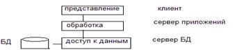 2. Понятие о трехзвенной архитектуре модели клиент/сервер. Если управление данными, обработка и представление делятся между 3 ЭВМ, то говорят о 3-х уровневой модели.