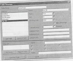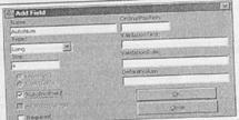 Рис. 3 Визначення полів Будь яке поле можна зробити лічильником - це значить що його значення буде автоматично збільшуватися на одиницю при додаванні нового запису і користувач вже не може змінювати його вміст. Для зміни значень треба встановити прапорець Autolncr-Field. В таблиці також слід визначити поле первинного ключа. Для завдання первинного ключа і індексації таблиці треба вибрати поле і натиснути кнопку AddIndex рис. 2 Щоб визначити ключ як первинний, достатньо встановити відповідний прапорець. Оскільки для первинного ключа необхідна однозначна величина, слід встановити і прапорець Unique.