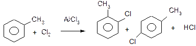 Оскільки бензильний радикал стійкіший за інші можливі за рахунок ефективної делокалізації неспареного електрону з-за супряження з ароматичним кільцем, галогенування любих алкілбензолів завжди проходить лише по α-атому вуглецю бокового ланцюга: