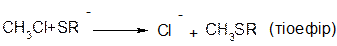 c. Взаємодія спиртів з хлористим тіонілом (SOCl2):