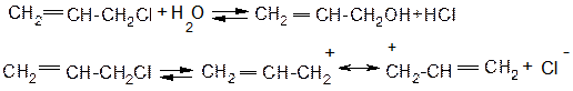Для алілгалогенідів характерине алільне перегрупування. Так як спряжений алільний катіон здатний приєднувати нуклеофіл за обома атомами карбону, які несуть позитивний заряд: