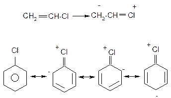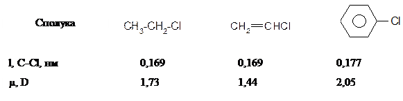 На відміну від розглянутих вище аліл- та бензилгалогенідах в присутності атому галогену безпосередньо при атомі карбону подвійного зв’язку в вініл- та неактивованих арилгалогенідах спряження неподіленої пари електронів атому галогену з сусіднім π- зв’язком вінілгалогенідів та π-системою неактивованих арилгалогенідів, яке приводить до відповідного скорочення зв’язку С-Hal, зв’язок набуває частково подвійний характер та стає більш міцним: