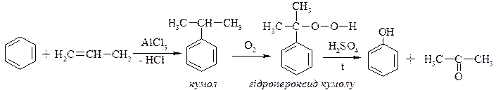 ІV.Кумольний метод (алкілування бензолу за Фріделем-Крафтсом).