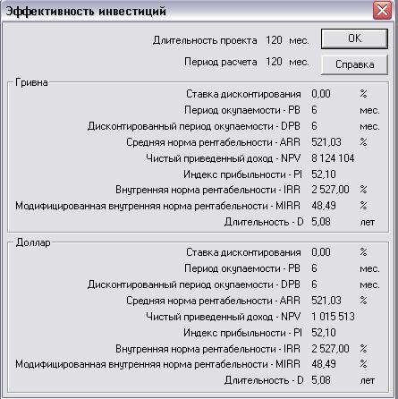 Рисунок 6.16 - Вікно діалогу «Эффективность инвестиций»