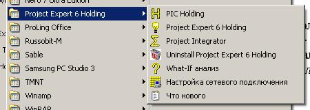 Рисунок 6.21 – Програмні додатки Project Expert Крім основної програми Project Expert тут присутні три спеціальних цільових додатки: PIC Holding, Project Integrator і What-if аналіз. Розглянемо функціональні характеристики даних додатків.