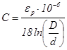 Ёмкость коаксиальной цепи рассчитывается по формуле ёмкости цилиндрического конденсатора: