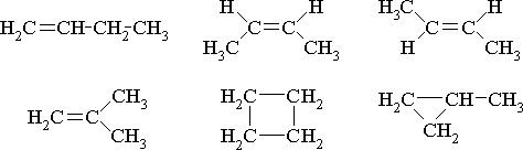 Одному и тому же элементному составу молекул (одной молекулярной формуле) может соответствовать несколько различных веществ – изомеров. Например, молекулярную формулу C4H8 имеют 6 изомерных соединений: