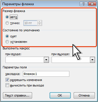 В окне Параметры флажка (рис. 1.80) настройте параметры флажка.
