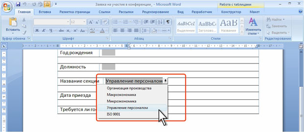 Форма - это структурированный документ с незаполненными областями (полями формы), в которые вводятся данные. Данные могут вводиться непосредственно с клавиатуры или выбираться в раскрывающихся списках. Пользователь может создать форму, а другие пользователи заполнят ее в Microsoft Word. Затем можно обработать собранные сведения.