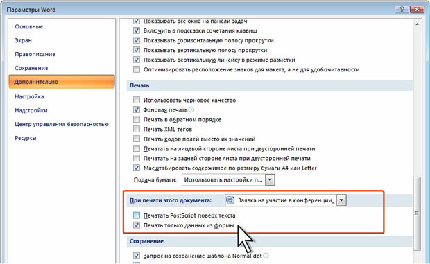 В категории Дополнительно диалогового окна Параметры Word в разделе При печати этого документа(рис. 1.87) установите соответствующий флажок.