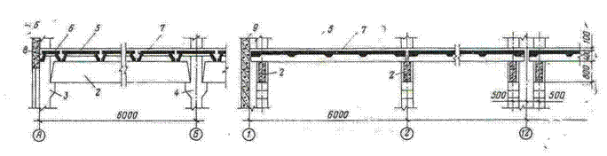 В многоэтажных зданиях в качестве несущих элементов используют ригели трапециевидного (таврового) или прямоугольного сечения. Ими перекрывают пролеты 6 и 9 м (рис. 10).