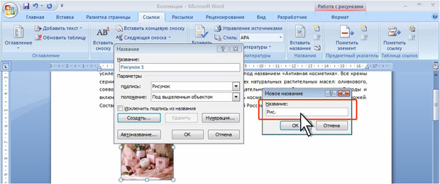 Во вкладке Ссылки в группе Названия нажмите кнопку Вставить название . В окне Название (см. рис. 2.60 ) нажмите Создать . В поле Название окна Новое название (рис. 2.65 ) введите новое название.