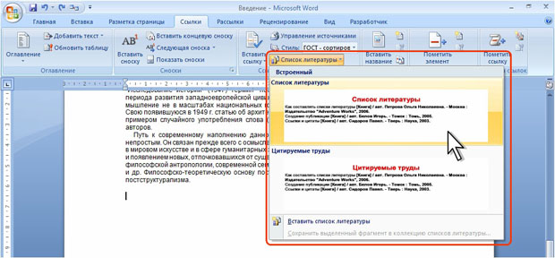 Создать список литературы можно в любой момент после того, как в документ вставлен один или несколько источников. Если для создания законченной ссылки недостает сведений, можно применить заполнитель, а дополнительные сведения ввести позже.