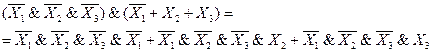 Первая скобочка – есть инверсия дизъюнкций, мы приводим ее к конъюнкции инверсий. Таким образом, у нас получается более упрощенное выражение. Но самое главное – избавление от длинной инверсии.