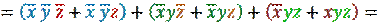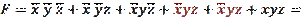 Задача 3. Упростить логическую функцию F (x, y, z), заданную таблично. Значение функции равно 1 на наборах 000, 001, 010, 011, 111.