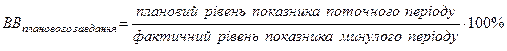 7. Відносна величина планового завдання показує, у скільки разів плановий рівень того чи іншого показника перевищує фактичний його рівень у базисному періоді. Обчислюється діленням планового завдання звітного (поточного) періоду на фактичний рівень показника в минулому (базисному) періоді.