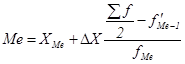 где XMe – нижняя граница медианного интервала; ∆X – его величина (размах); ∑f/2 – половина от общего числа величин;