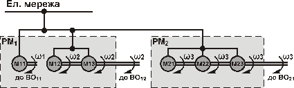 ED are joined with operating mechanism and machine into single system, allowing to execute rational drive and system design, to increase technical, economic and ergonomic parameters. Multimotor ED allows to preserve the load symmetry of actuator mechanism AM, decrease strip load, its tension and replace concentrated load by distributed one.