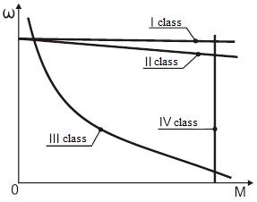 The whole variety of electrical motors can be divided into four groups (classes) with the approximately same character of mechanical characteristic rigidity changing in the each class, see the figure 3.2. І class. Electric motors of first class have absolutely rigid mechanical characteristic. With this the speed of motor remains stable at changing of its moment, i.e.: