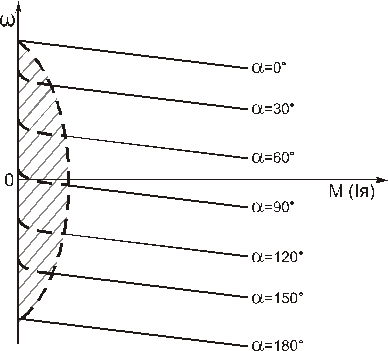 When α=0 thyristors receives the control impulses U1 from SIPC in the moment of their natural opening, converter realizes the full-wave rectification and the full voltage applies to the DC motor. If with the help of SIPC the impulse feeding will occurred not in the moment of thyristor natural opening, but with the shift by angle The pulsating character of converter EMF leads to the current pulsations in the DC motor armature circuit; it is the reason of bad influence on the DC motor operation, worsening of commutation, i.e. worsening of commutator operation, increases energy and heat losses. For decreasing of current pulsation the smoothing choke is connected into the armature circuit. Besides, the increasing of number of rectifier phases leads to decreasing of pulsation. Static characteristics o electric drive have the next view.
