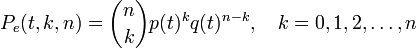 Вероятность того, что в системе, состоящей из одинаковых (равнонадежных) элементов, безотказно работают не менее элементов, может быть вычислена по формуле[3]: