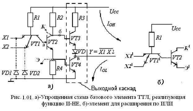 Потенциальная система элементов ТТЛ. Схема базового элемента представлена на Рис. 1.1.