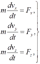 Равенства (1) и (2) содержат производные и носят названия дифференциальных равенств. В механике эти равенства обычно называют дифференциальными уравнениями движения материальной точки. На практике эти векторные уравнения обычно записывают в проекциях на оси той или иной системы координат. В случае декартовой системы координат будем иметь. При движении в пространстве: