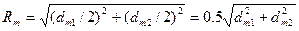 де Kβ = l,3...1,5 – коефіцієнт, враховує нерівномірність розподілу навантаження у контакті котків. Радіуси кривини робочої поверхні конічних котків на довжині їх спільної твірної неоднакові. За розрахункові беруть радіуси кривини робочих поверхонь у точках середини лінії контакту котків (див. рис. 20.7):
