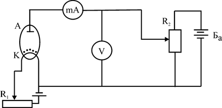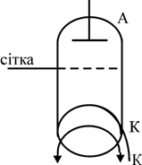 За допомогою квантової фізики Річардсон і Дешман отримали вираз для густини струму насичення. / I / де B- стала величина, ej - робота виходу електрону з металу, к - стала Больцмана, Т- абсолютна температура катоду. Формулу / I / називають формулою Річардсона-Дешмана. Із цієї формули слідує, що густина струму насичення різко збільшується із збільшенням температури катоду та з зменшенням роботи виходу електрона. Наприклад, як показують розрахунки, для чистої поверхні вольфраму (ej = 4,5eB) при збільшенні температури з густина струму насичення збільшується в раз, а коли при сталій температурі Т=1000 К порівняти густину струму насичення при і , то густина струму збільшується в раз. Досліди показують, що реальна густина струму насичення менша, ніж та, що одержується за формулою / I /, це пояснюється тим, що частина електронів, що вилетіла з катоду повертається знову на катод. Тому замість сталої B в формулу вводять , де g - так званий коефіцієнт відбивання Шотткі. Явище термоелектронної емісії широко використовується на практиці в електронних лампах, електронно-променевих трубках й інших електровакуумних приладах. Найпростішими електровакуумними приладами є лампи діод і тріод. Як відмічалось, лампа діод являє собою скляний або металевий балон, з якого відкачане повітря і в якому розміщені два електроди анод та катод, який може нагріватися: Особливістю діода є те, що він пропускає струм лише в одному напрямку і широко використовується для випрямлення змінного струму, а також детектування сигналів. Більш складною є лампа тріод - третім електродом є керуюча сітка, з допомогою можна керувати анодним струмом, тому сітка називається керуючою. Лампа тріод широко використовується для підсилення напруги - підсилення слабких сигналів електромагнітних коливань, що виникають в антені радіоприймача й ін.