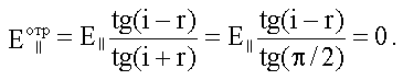 При выполнении условия Брюстера i + r = π/2, тогда из формулы Френеля для
