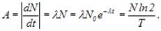 Отже, активність обернено пропорційна до періоду піврозпаду і зменшується з часом за експоненціальним законом. Радіоактивний розпад записують у вигляді рівняння