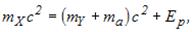 де При радіоактивному розпаді справджується закон збереження енергії, згідно з яким повна енергія материнського ядра дорівнює повній енергії продуктів розпаду: