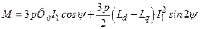 де перший член в (13.4) визначає синхронізуючий момент, а другий – реактивний. Якщо СД живити від інвертора струму, то (13.4) з врахуванням, що