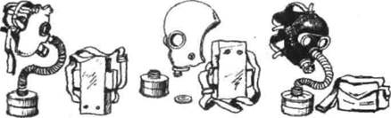 Те саме і аерозолі Фільтруючі саморятівники СПП -2 ( СПП -4) використовують для захисту органів дихання від окислу вуглецю, пилу і диму при пожежах на шахтах і в рудниках. Вони складаються з фільтрувального патрона, на якому закріплені згубник з носовим затискувачем і система кріплення фільтрувального патрону на голові. Фільтруючий патрон з елементами зберігається в герметичній металевій упаковці, на кришці якого закріплена плечова тасьма для носіння саморятівника. Саморятівники СПП-2 (СПП-4) – це прибори разової дії і призначені тільки для виходу із загазованої зони. Використання їх допускається в повітрі з об’ємною часткою кисню не менше 17% і об’ємною часткою окислу вуглецю не більше 1%. Саморятівники мають фільтр попередньої очистки повітря від пилу і диму. При роботі саморятівники нагріваються, що характеризує їх справність. Для зниження температури повітря, що вдихається, саморятівник СПП-4 має спеціальний тепло-обмінник. Вони зберігають свої захисні якості протягом трьох років при зберіганні в умовах складу. Респіратори, що використовують для забезпечення ЦО (Р-2 і Р-2Д) і в про-мисловості (ШБ-1, «Айстра-2», Ф-62П та інші), використовують для захисту органів дихання від радіоактивного пилу, ґрунтового і промислового пилу і ряду аеро-золів. Розмір респіраторів визначається за обміром параметрів обличчя людини.