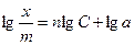 Показатель степени n и коэффициент пропорциональности а в уравнении Фрейндлиха определяются экспериментально. Логарифмируя уравнения, получаем: