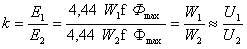 Отношение ЭДС обмотки высшего напряжения к ЭДС обмотки низшего напряжения называется коэффициентом трансформации.
