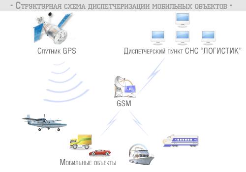 Рисунок 67 Структурная схема Принятая информация сохраняется в базе данных для последующей обработки, а также отображается на электронной карте местности. Таким образом, оператор диспетчерского центра имеет возможность визуально контролировать местонахождение мобильных объектов, выдавать информацию о происшествиях (по информации датчиков) и оказывать активное воздействие на объекты. Диспетчерский центр СНС «ЛОГИСТИК» позволяет: - получать посредством используемых систем радиосвязи и архивировать в базе данных информацию от мобильных объектов, в том числе и изображения; - отображать на электронной карте географическое местоположение (адрес), направление, трассу и скорость движения мобильных объектов и их состояние на основании информации от датчиков; - увеличивать или уменьшать масштаб карты, смещать ее в произвольном направлении и центрировать в нужной точке, изменять свойства отображения карты; - определять названия и осуществлять поиск географического объекта (улицы, станции метро, железнодорожной станции и т.п.) по карте; запрашивать местоположение и состояние мобильных объектов по системе связи; - контролировать датчики, установленные на мобильных объектах (на дверях, в кабине водителя, "Тревожную кнопку" и т.д.), и дистанционно изменять параметры их работы; - осуществлять защиту от несанкционированного доступа к передаваемым данным; - контролировать вход, выход и нахождение мобильных объектов и внутри определенных зон и на маршруте; - решать ситуационные задачи на основе информации, поступающей от датчиков мобильных объектов, выявлять нештатные ситуации; - вести журнал действий диспетчера. Эти функции могут быть дополнены или изменены. Терминал мобильный обеспечивает определение и передачу на диспетчерский пункт следующих данных о контролируемом объекте: - географические координаты положения; - скорость; - направление движения; - время; - состояние датчиков, установленных на объекте; - пройденное расстояние.