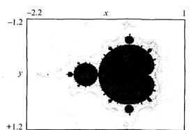 У фрактальной математики возникают все новые и новые сферы применения. Коснемся лишь одного перспективного направления — создания алгоритма фрактального сжатия графической информации. В 1991 году такой алгоритм был найден. Он имеет ряд уникальных возможностей. Фрактальный архиватор позволяет, например, при распаковке произвольно менять разрешение изображения без появления эффекта зернистости. Более того, он распаковывает гораздо быстрее, чем ближайший конкурент, JPEG, и не только статическую графику, но и видео. В 1992 году компания Microsoft использовала фрактальный архиватор и выпустила компакт-диск Microsoft Encarta мультимедиа-энциклопедия, содержащий информацию о животных, цветах, деревьях и живописных местах. На диск было записано 7 часов звука, 100 анимационных роликов, примерно 800 масштабируемых карт, а также 7000 качественных фотографий. И все это — на одном диске! Напомним, что обычный компакт-диск в 650 Мбайт без использования компрессии может содержать либо 56 минут качественного звука, либо 1 час видео с разрешением 320 х 200 в формате MPEG-1, либо 700 полноцветных изображений размером 640 х 480. В настоящее время алгоритмы, используемые для генерации изображений фрактальной графики, находят применение и в традиционных видах компьютерной графики: растровой и векторной. Например, в CorelDRAW эти алгоритмы используются для создания текстурных заливок. В недавно появившейся на рынке ПО растровой программе PhotoDraw 2000 фирмы Microsoft кроме стандартных градиентных заливок контуров можно сгенерировать фрактальный узор и воспользоваться им в качестве заливки. Фрактал можно определить как объект довольно сложной формы, которая получена в результате выполнения простого итерационного цикла. Итерационность, рекурсивность процедуры создания обуславливают такие свойства фракталов, как самоподобие — отдельные части похожи по форме на весь фрактал в целом. Латинское fractus означает "составлен из фрагментов". В 1975 году французский математик Бенуа Мандельброт издал книгу "The fractal Geometry of Nature". Слово "фрактал" стало модным, и остается таковым и поныне. Фракталом Мандельброта названа фигура, которая порождается очень простым циклом. Для создания этого фрактала необходимо для каждой точки изображения выполнить цикл итераций в соответствии с формулой: