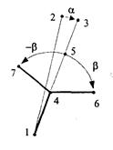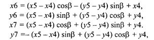 Точки 6 и 7 — это точка 5, но повернутая относительно точки 4 на углы β и -β соответственно: