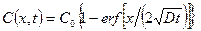 При диффузии в полуограниченный образец (0 < х < ¥) с нулевой начальной концентрацией С (х, 0) = 0 из другого полуограниченного образца (– ¥ < х< 0) с постоянной начальной концентрацией С0 концентрация диффундирующего вещества изменяется в соответствии с выражением