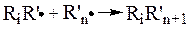 б) развитие цепи уплотнения с участием долгоживущих свободных радикалов: