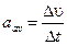 The SI unit of acceleration is m/s2. If a car goes from rest to 90 km/h in 15 s, a = (90 km/h)/(15s) = 6 km·h-1/s. This means that on average the velocity increases by 6 km/h in each 1-s interval. On a graph of υ versus t, such as Fig. 2.6, the average acceleration is found from the slope of the line joining the initial and final points. The sign of a av is determined by the sign of ∆υ. By analogy with Eqs. 2.4 and 2.5, the instantaneous acceleration is defined as the derivative of υ with respect to t: