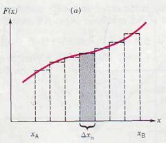 As the size of the steps is reduced, the tops of the rectangles more closely trace the actual curve shown in Fig.4.5 b. In the limit ∆x→ 0, which is equivalent to letting the number of steps tend to infinity, the discrete sum is replaced by a continuous integral: