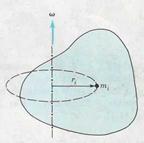 Figure 6.1 shows a rigid body of arbitrary shape rotating about an axis fixed both in position and in direction. The body consists of point particles of mass mi at distances ri from the axis. Note that the ri are the perpendicular distances to the axis, not the distances from an origin. The kinetic energy of the i th particle is